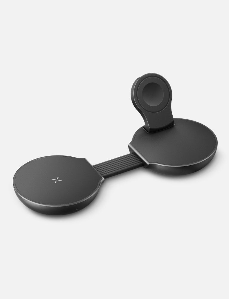 Travel-ready design that flexes between 2 or 3 device charging without taking up extra space