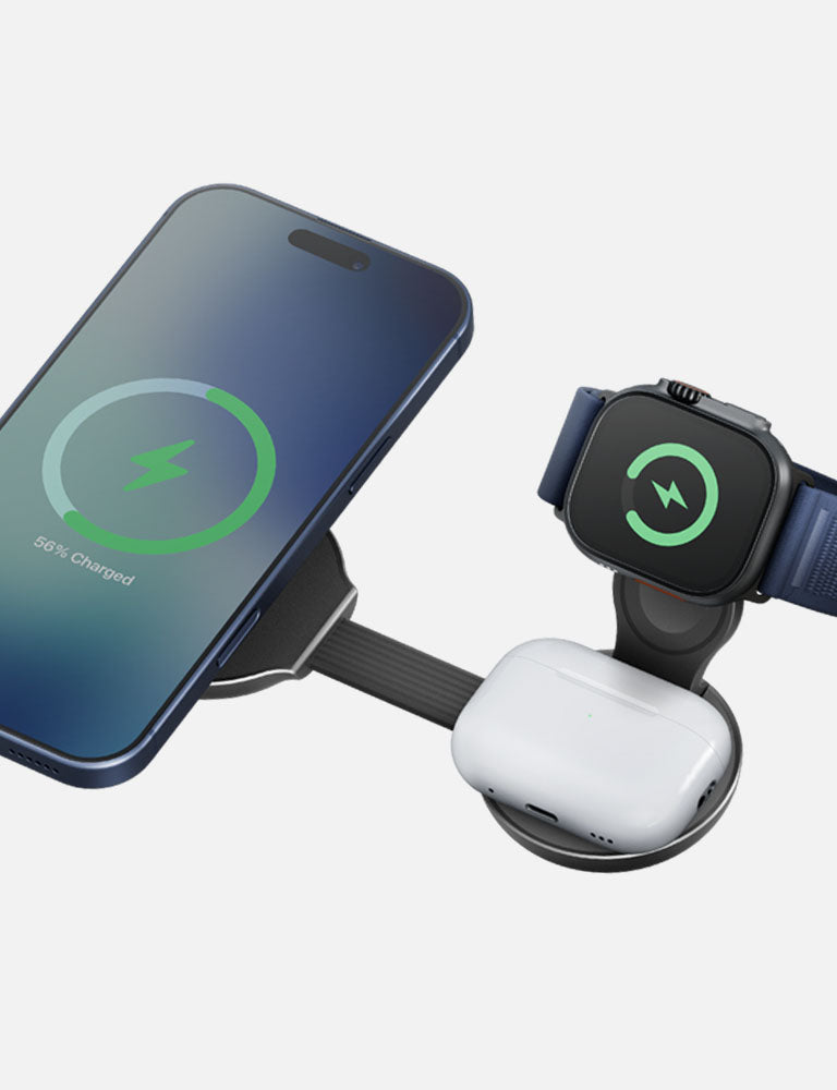 Crafted with a sleek aluminium finish, AluMag Trio 2 delivers a foldable, travel-ready Qi2 25W wireless charging experience. Power your iPhone, AirPods, and Apple Watch all at once in one ultra-compact setup.