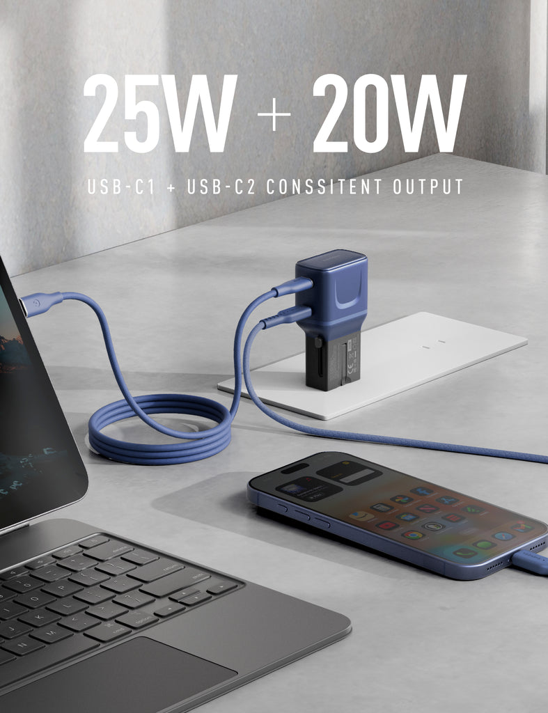 - Dual USB-C output of 25W+20W for charging of devices at high speed