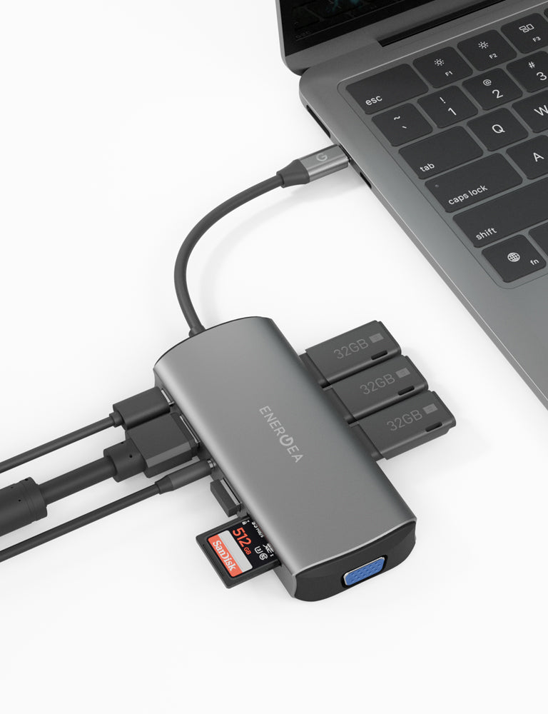 An 11-in-1 aluminium USB-C Charging Hub. Equipped with integrated USB-C 3.0 Power Delivery charging port of up to 100W, 3 USB-A 3.0 ports and 1 USB-A port 2.0. Enjoy ultra fast surfing speed with 1000Mbps ethernet LAN.