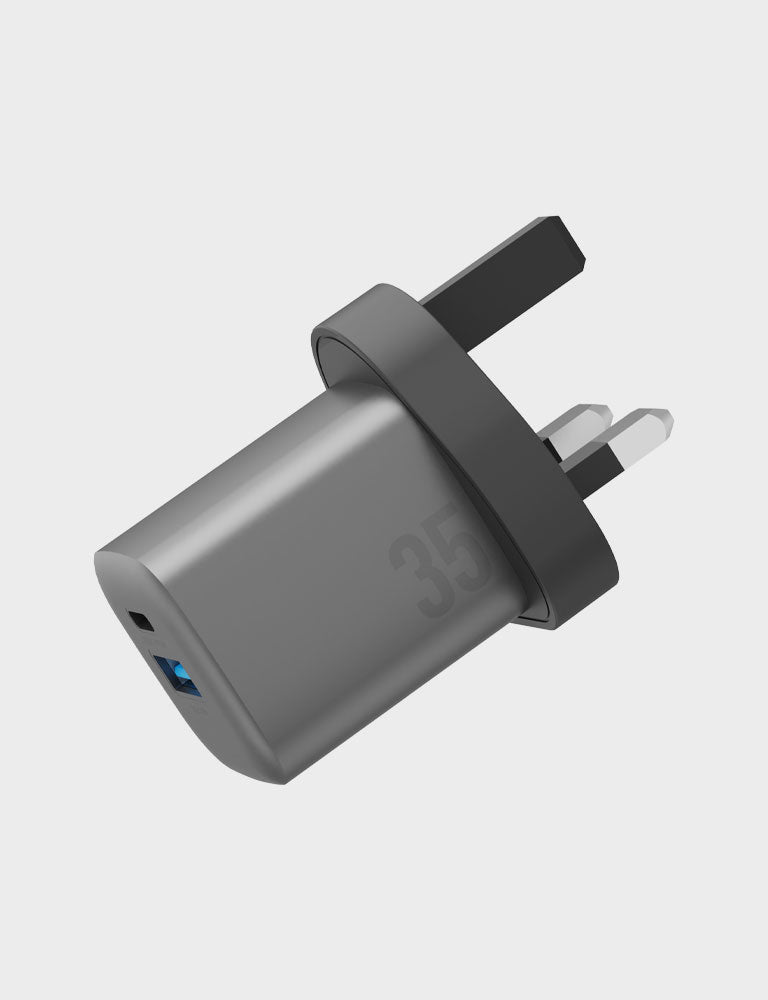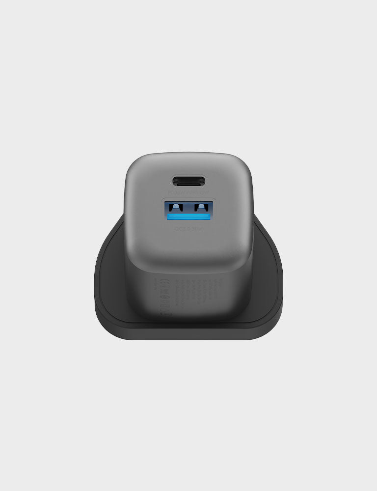 GaNSmart Technology takes the lead with its ultra-compact design, a remarkable 60% smaller than other original 30W wall chargers in the market. This innovative technology optimizes charging efficiency by ensuring minimal losses in the form of heat. It also supports Power Delivery 35W, PPS33W, and Quick Charge 3.0, all while providing essential safety features for worry-free usage.