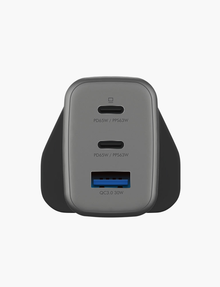 GaNSmart Technology takes the lead with its ultra-compact design, a remarkable 50% smaller than 65W wall charger in market standard . This innovative technology optimizes charging efficiency by ensuring minimal losses in the form of heat. It also supports Power Delivery 65W, PPS63W, and Quick Charge 3.0, all while providing essential safety features for worry-free usage.