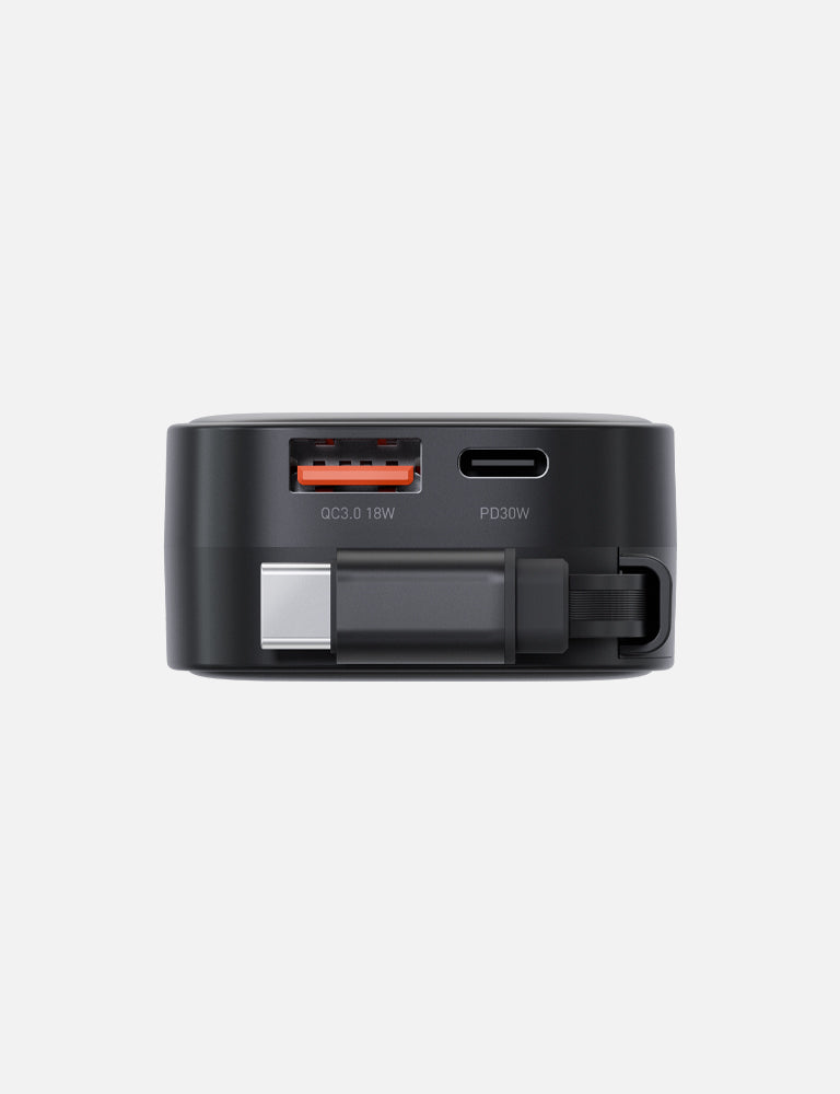 • Stay tangle-free and charge with ease, using its built-in 75cm USSB-C retractable cable.