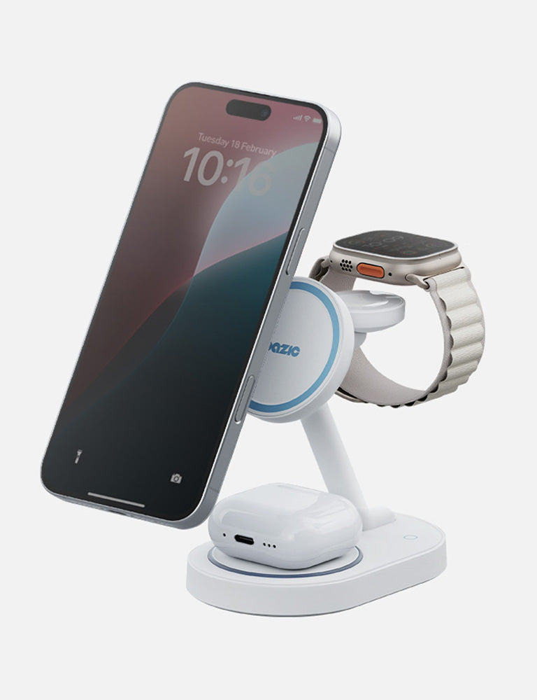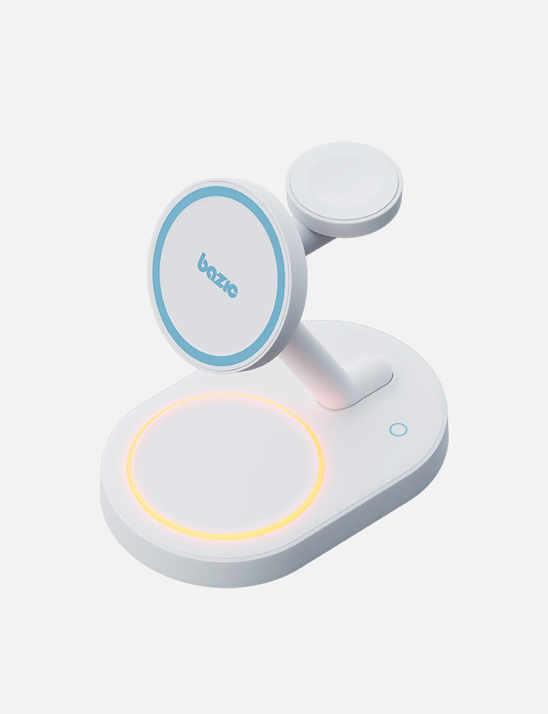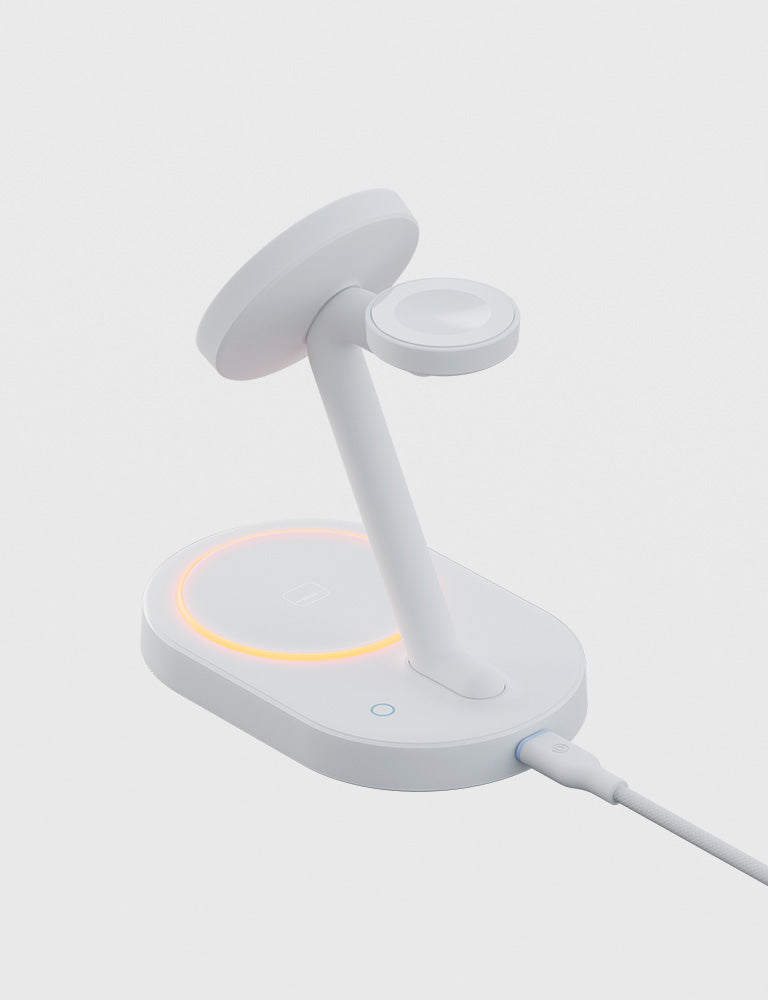 Elevate your living space with smart, streamlined charging from GoMag Station 2. This 3-in-1 Qi2 wireless charging stand fuels your phone, earbuds, and watch with precision magnetic alignment—no clutter, no delays. The built-in ambient light adds a soft glow to your space, turning your nightstand or desk into a modern charging hub. Fast, seamless, and beautifully designed to work where you live.