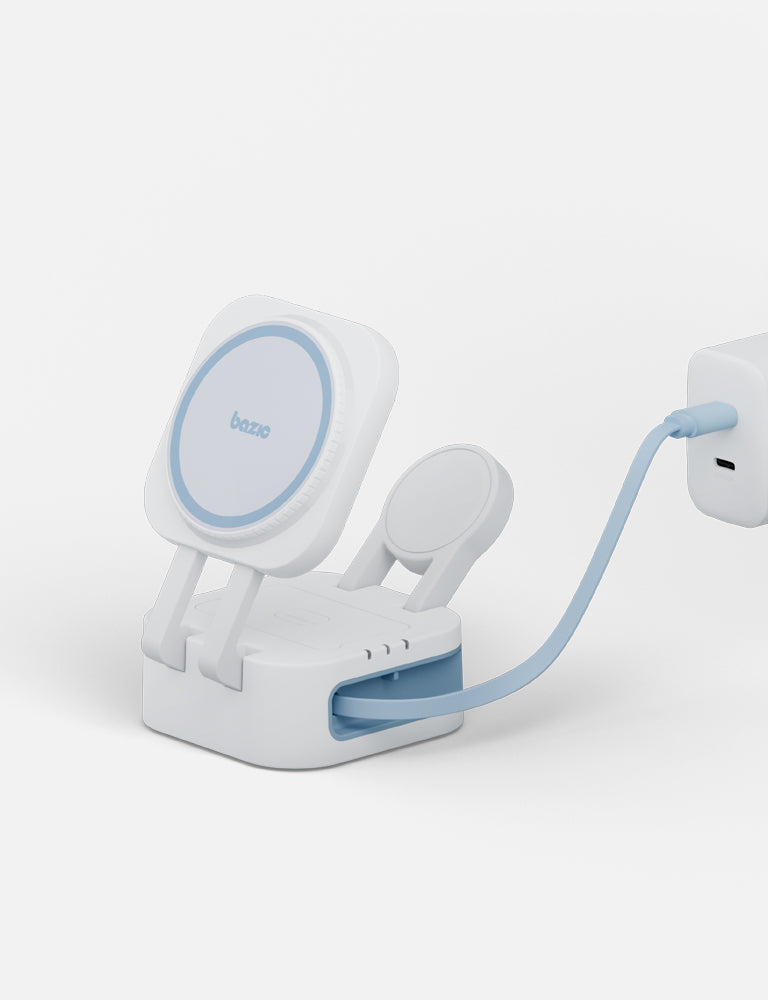 Less mess, more charge. GoMag Station Mini is designed for everyday ease, this foldable 3-in-1 wireless charger powers your phone, watch, and earbuds all in one spot. Its compact structure tucks away neatly, while the built-in retractable cable helps keep things clean and organized—wherever you set up.