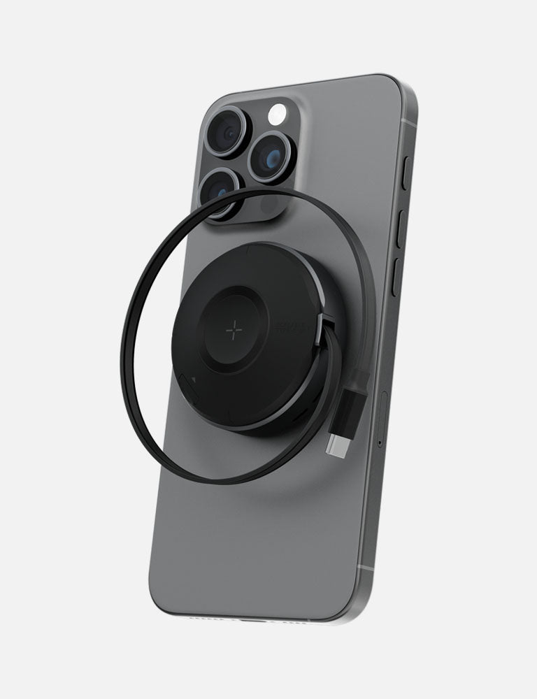 A 2-in-1 wireless charger combining convenience and portability, allowing users to charge both phone and Apple Watch simultaneously. It features a brushed metallic body, dual wireless charging pads, a built-in retractable cable and an integrated kickstand. MagDuo Arc is the perfect companion for digital nomads constantly on the move.