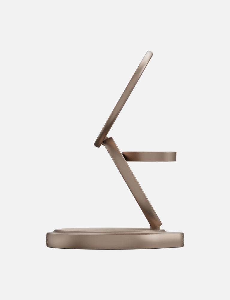 Simplify your charging setup with GoMag Gyre. Charge your Apple essentials together using a MagSafe-compatible iPhone stand, wireless AirPods pad, and magnetic Watch module for ultimate convenience
