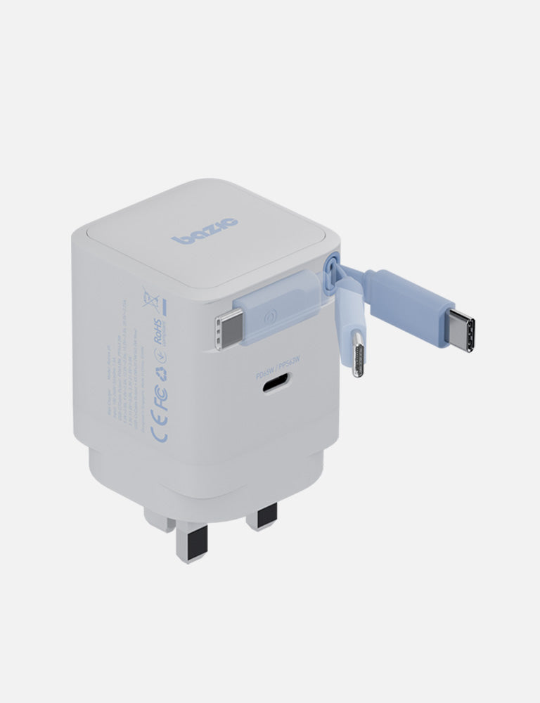 Retrek 65 is a compact charging solution that integrates both a wall charger and cable. The ultra-portable 65W GaN wall charger features a retractable USB-C cable and a single USB-C port, making it easy to power your devices on the go. Designed for everyday convenience and portability.